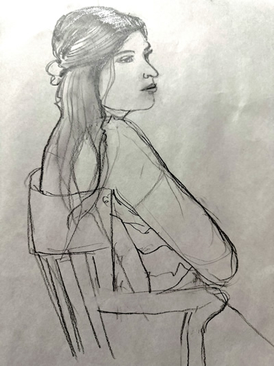 "I enjoy drawing...looking at a landscape, a face, or the human figure...studying the lines, shapes, and shadows, capturing images on paper. Studying the form, truly seeing it and having it come to life with my pencil brings a stillness as thoughts fade into the background. What remains is focus, the very act of seeing. When I let the process flow and drop judgement and effort, the form emerges on paper with grace. The essence of beauty in every person is what I hope my work reflects."